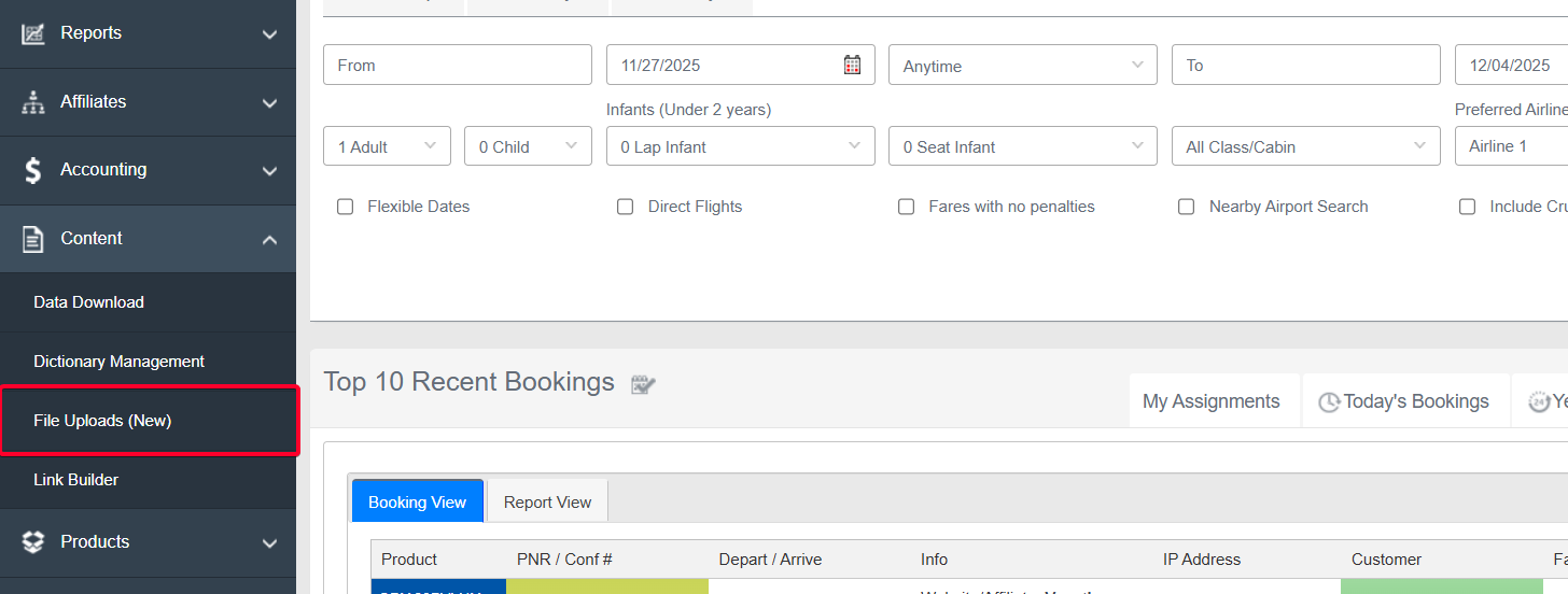 - Go to Content >> File Uploads page as shown in the image below.
